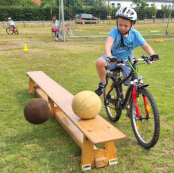In dieser Woche wird viel auf dem Parkourplatz Rad gefahren, für unseren Waldcrosslauf am 30. Juni geübt, sich mit