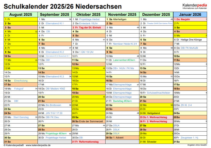 Schulkalender 2025/26